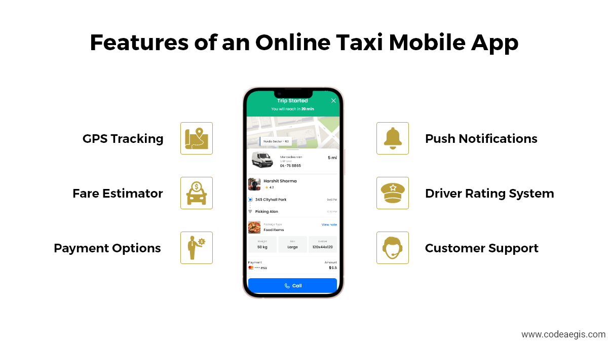 Basic features for a taxi app include a fare calculator, GPS tracking, and a payment gateway. These features can be developed for around $10,000.