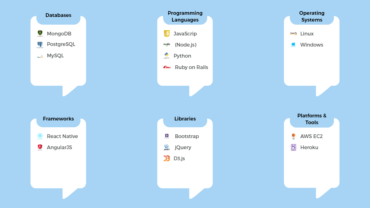 Programming Languages - JavaScript (Node.js), Python, or Ruby on Rails