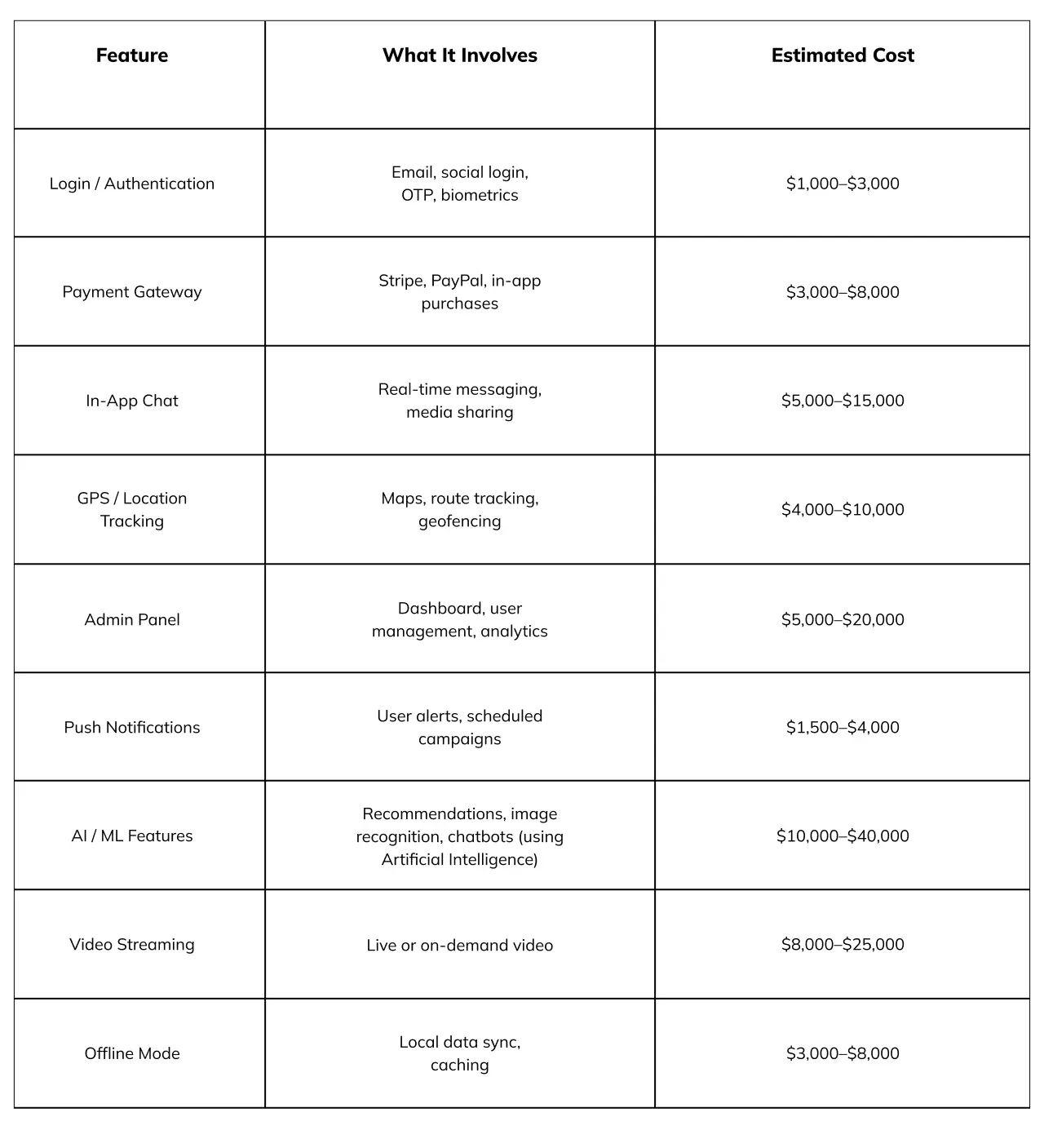 Even in Swift app development, feature complexity is a major cost driver. The next section will break down feature-level costs in detail.