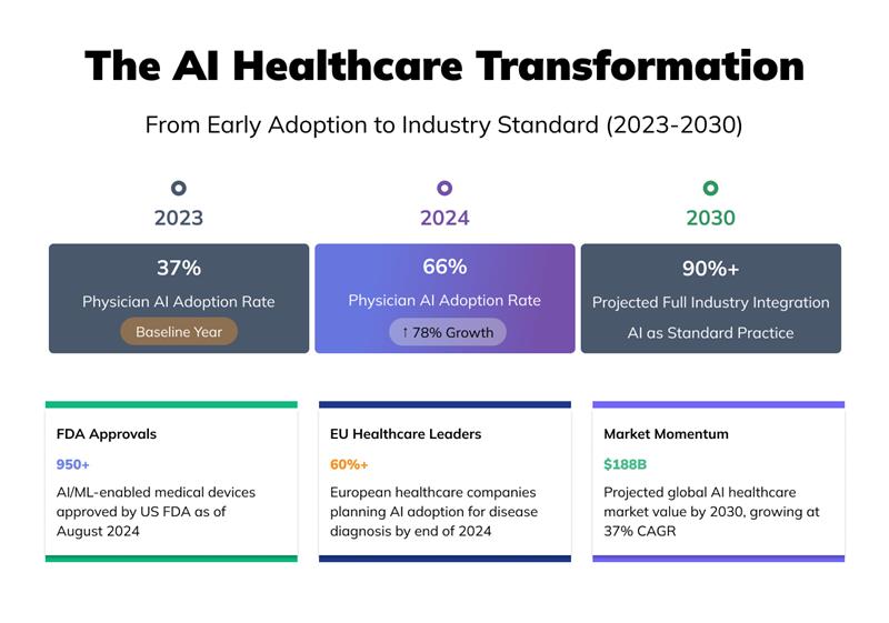 The data presents a convincing picture of how AI is being incorporated into healthcare systems around the globe. According to a poll, 66% of doctors said they used health care AI in 2024, a notable 78% increase from 2023. This quick uptake shows that AI isn't merely a fad; rather, it's quickly becoming a necessary tool in contemporary medicine.