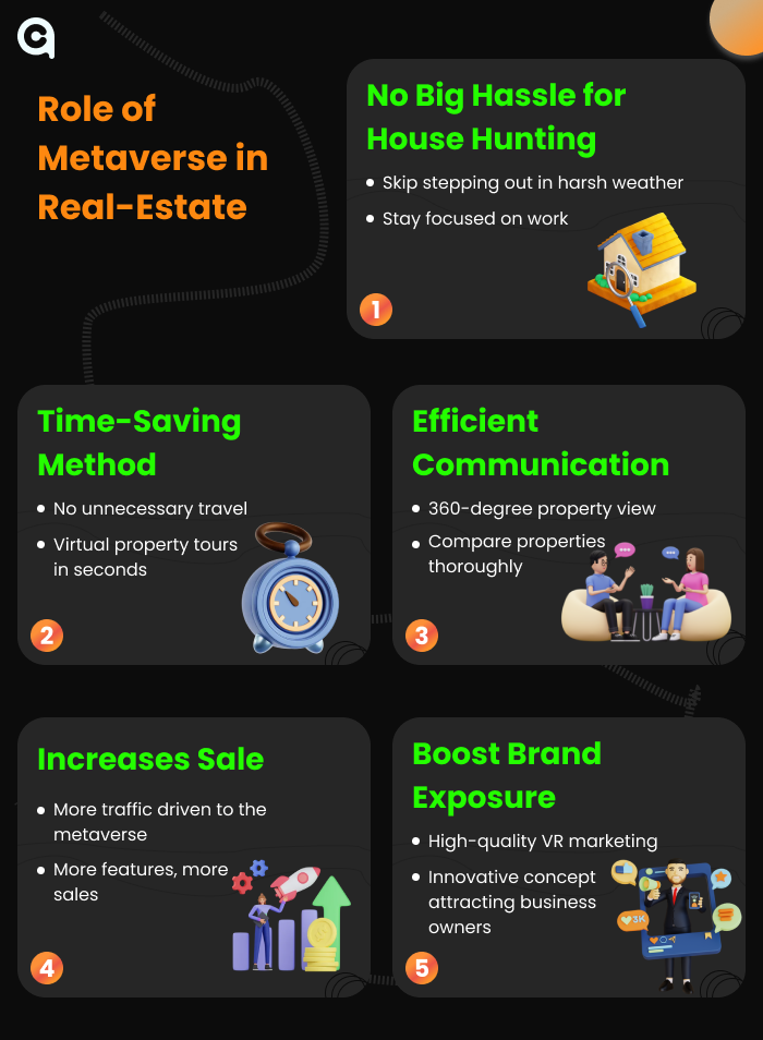 Boost Brand Exposure: Real estate industries focusing on high-quality VR marketing are more likely to boost their brand by acquiring clients through websites, social media platforms, and other means. Metaverse in real estate is still a new concept, though, at an initial level, companies will develop more brand recognition and profit to stay ahead in the market.