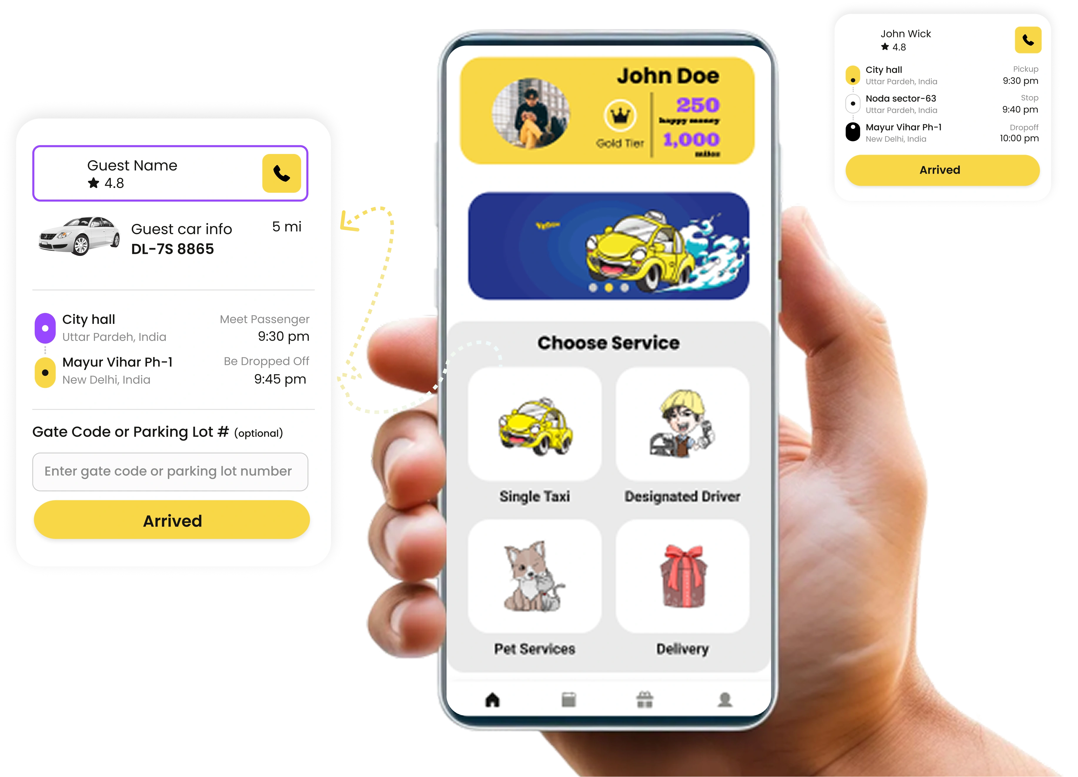 - Multi-service booking, Single rides, designated driver, pet-friendly rides, and delivery services.