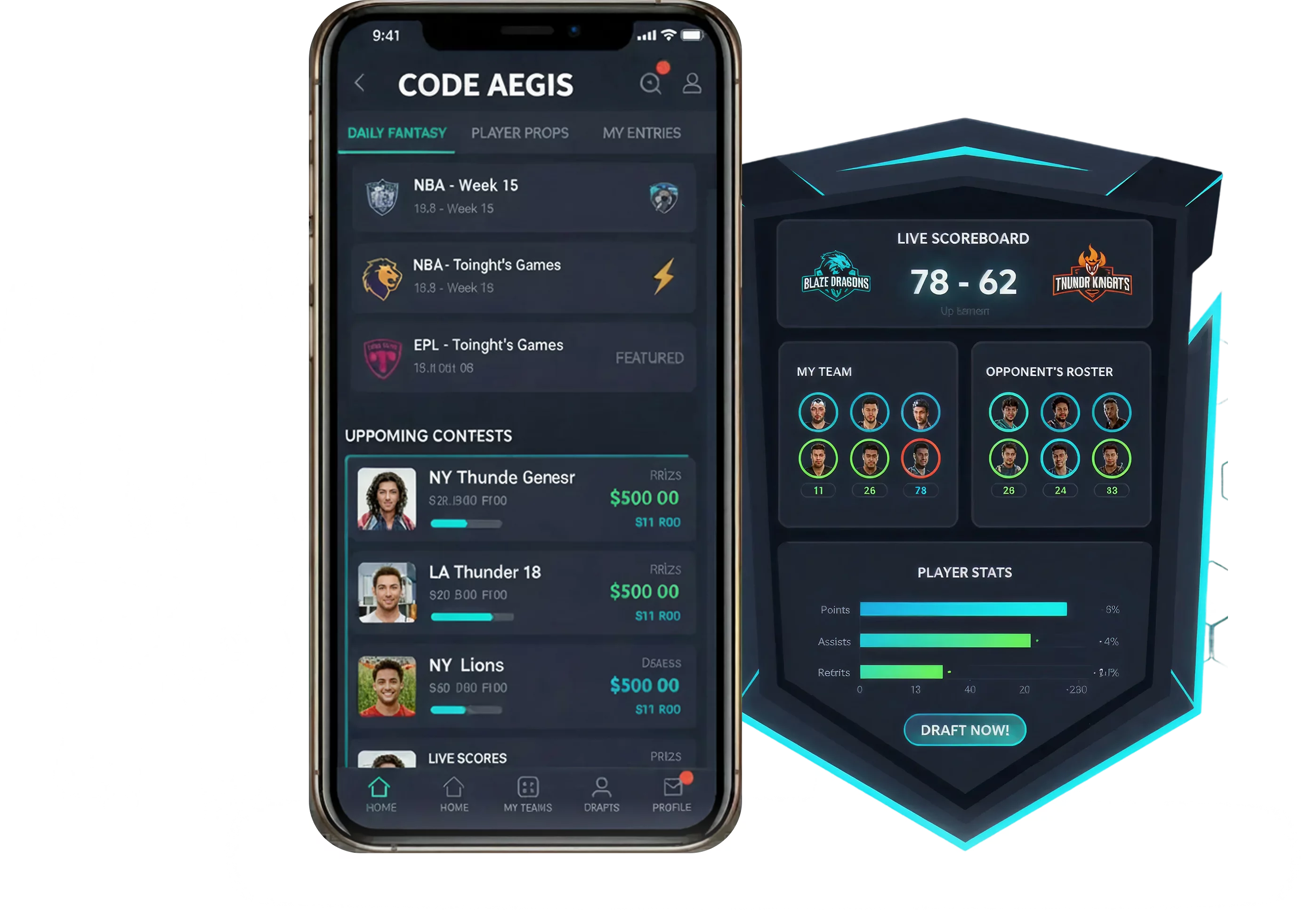 Explore how CodeAegis transforms your great ideas into fully-functional fantasy sports applications.